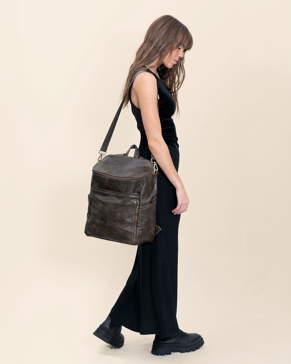 If you want a diaper bag that isn't a cliché or a typical diaper bag aesthetic, this daring yet chic backpack is for you! The cutest and stylish choice to carry all your personal items and your baby's essentials. I also appreciate the unisex look of it because my husband can wear it as well and it looks great with his outfits too. An everyday leather look to upscale a casual outfit.