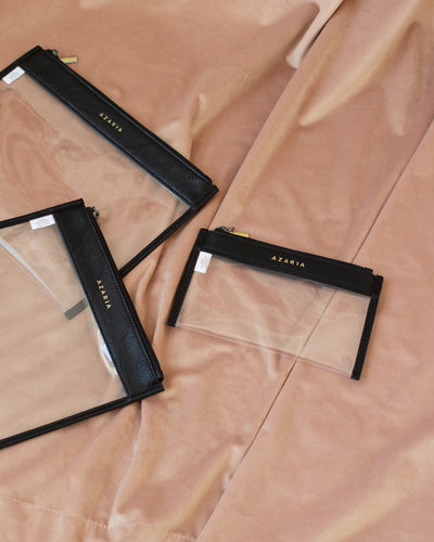 A mini-sized, clear organizer pouch that makes it easy to see what you're carrying. Great for storing makeup, school supplies, first aid kits, snacks, money, and keeping things protected from the elements wile traveling.