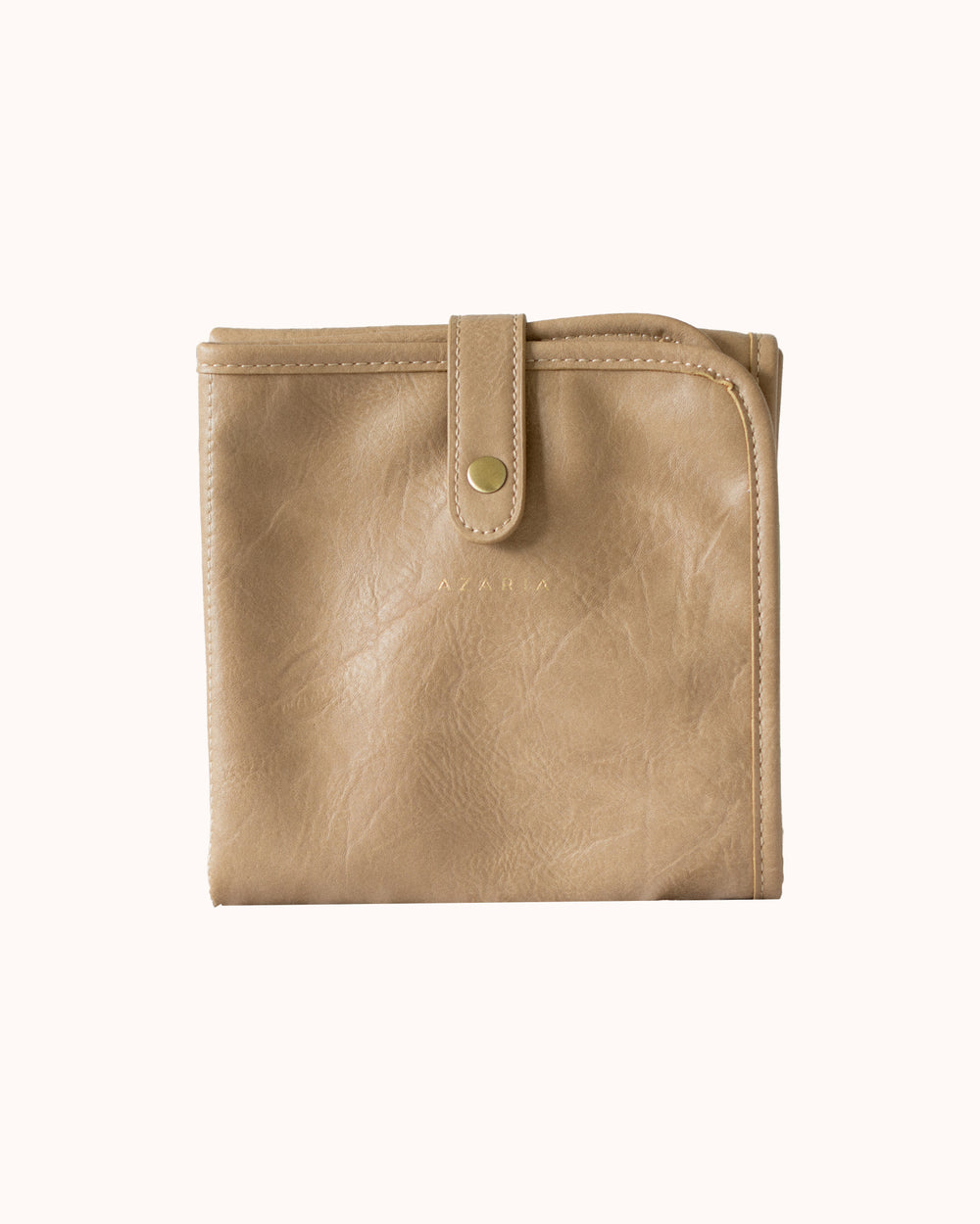 Crafted from durable, textured vegan leather, the changing pad is waterproof, wipeable, and folds compactly into the bag when not in use. The interior features AZARIA’s signature Vintage Rose lining.
