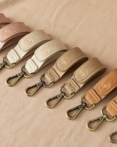 A set of two classy stroller hooks that easily attach to your stroller to help carry your belongings. Easily clip the D rings of your Azaria La Mère backpack to these hooks for all of your hands-free adventures. The metal clasps will securely hold your bag so that it does not accidentally slip off. Great also to carry those shopping bags while you push your stroller! Made from textured, matte, luxe vegan leather and hidden powerful velcro to securely attach to stroller handles.